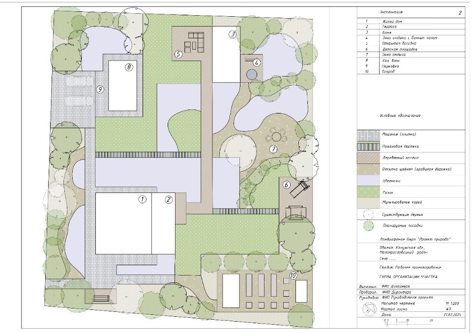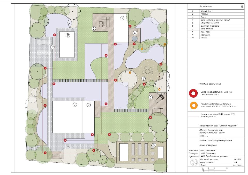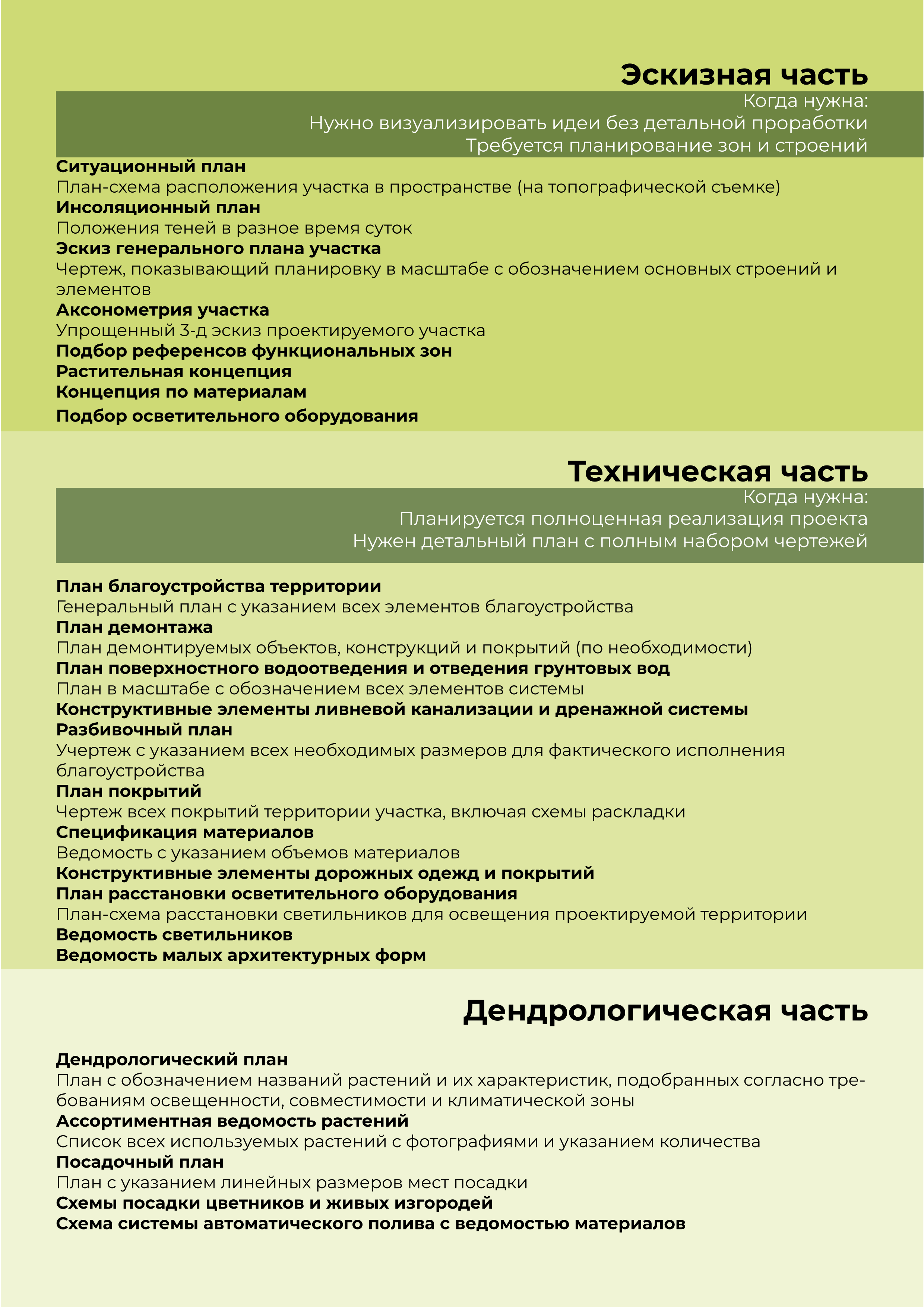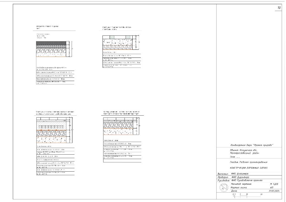 - Рабочая документация в необходимом обьеме (генплан, разбивочный чертеж, план мощения, дендроплан, посадочный чертеж, план расстановки осветительного оборудования и др.)